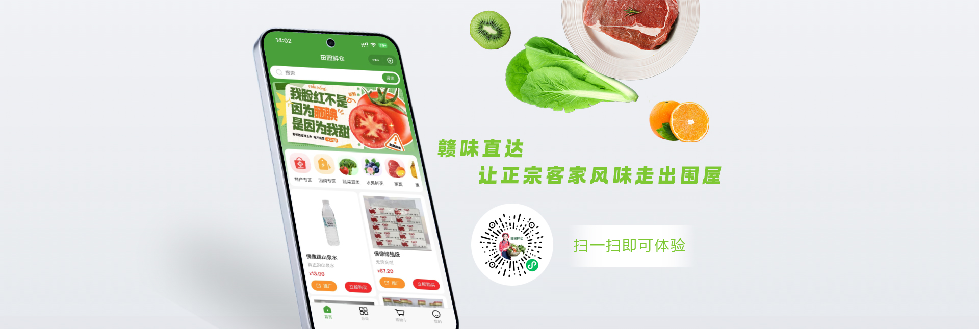 赣南特色一站式购齐,深度聚合18区县非遗特产、地标农产品(如赣南脐橙、南安板鸭、会昌米粉),解决外地游客选购难、本地人送礼需求痛点。"